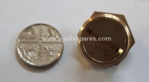 Brass inner door ball and surround assembly. Simply screws in to make sure that door shuts firmly. This is suitable for all Deluxe solid fuel Aga range cookers, both pre 74 and post 74.