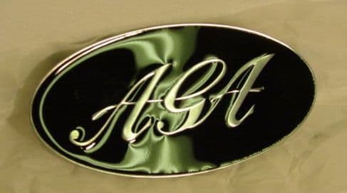 Classic italic Aga range cooker badge for the Deluxe Post 74 model. This badge Will NOT FIT earlier models without drilling the front!