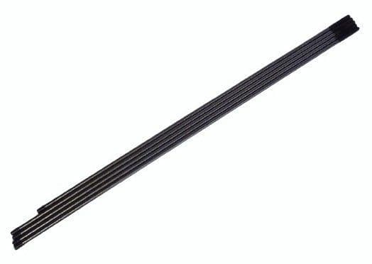 They are held down by tapered circular nuts with a hollow centre (see our other listing) that the chrome buttons screw onto. Rods are approximately 33 inch long.